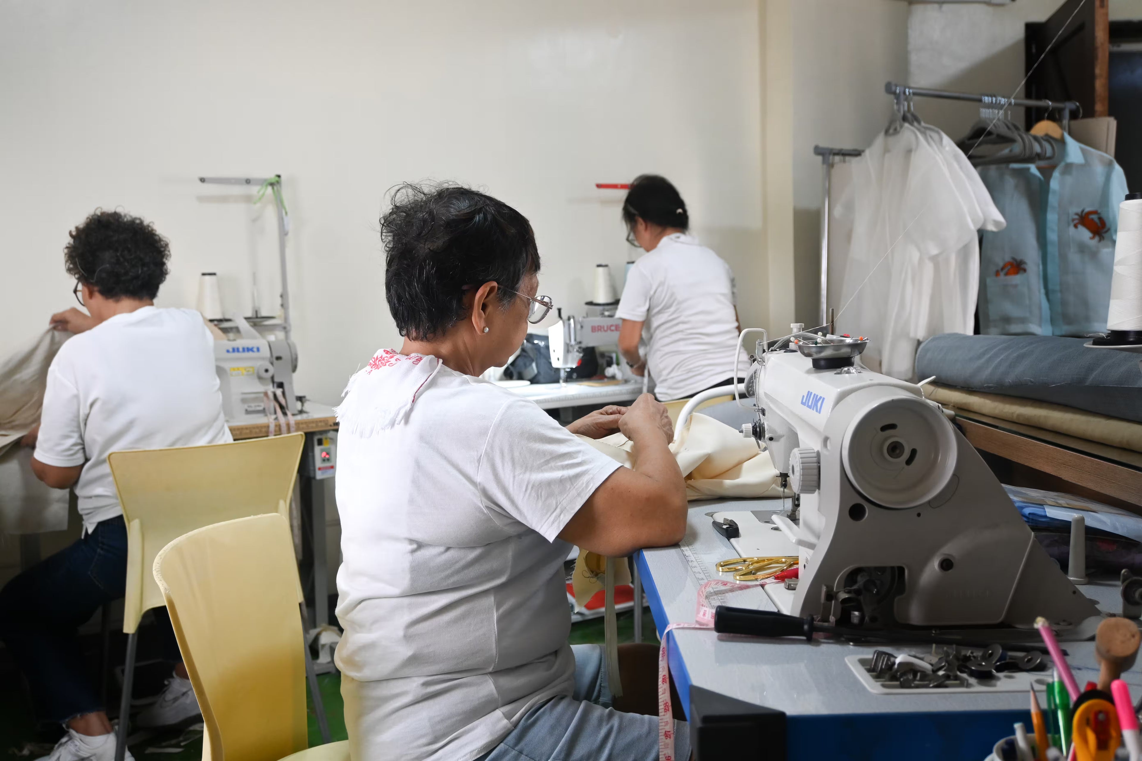 Behind every piece is our small but passionate team, led by our co-founder and production lead who keeps everything running seamlessly. Working side by side with our senior seamstresses, the studio buzzes with chatter, laughter, and the hum of sewing machines (plus a little Papa Dudut playing from their little radio).
